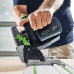 Аккумуляторная погружная пила FESTOOL TSC 55 5,0Специализация Точное погружное отрезание материала толщиной до 55 мм Торцевание межкомнатных дверей - шина-направляющая с погружной пилой Вырезание проёмов в дверях и кухонных столешницах Вырезание компенсационных швов в паркете и торцовка потолочного покрытия близко к стене Раскрой листовых материалов Часто всё решают миллисекунды: отдача — самая частая причина тяжёлых травм при работе с погружной пилой. Поэтому наше уникальное устройство KickbackStop останавливает пильный диск аккумуляторной погружной пилы в мгновение ока и не только защищает Вашу заготовку, но и снижает опасность травмирования Ваших рук. Кроме того точные резы теперь выполняются в два раза быстрее и повышается свобода действий на рабочем месте. Наши пильные диски нового поколения обеспечивают высочайшую производительно пиления и превосходное качество реза. Завершает систему пиления умная системная оснастка: шины-направляющие, угловой упор, противоскольный вкладыш и верстак.