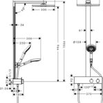 Описание • Cостоит из: верхний душ, ручной душ, термостат для душа, штанга для душа, держатель для душа • верхний душ Raindance E 300 Air 1jet • размер диска верхнего душа: 300 x 300 мм • типы струй верхнего душа: RainAir • шарнирное соединение: регулируемый угол верхнего душа • держатель ручного душа регулируется в пределах 90°, поворачивается вправо и влево, перемещается вверх и вниз • поверхность полочки: анодированный алюминий • душевая штанга: 1000 мм • диаметр штанги: 61 mm • длина держателя верхнего душа: 405 мм • максимальный расход воды при 3 бар: 9 л/мин • расход воды для струи RainAir (при 3 бар): 9 л/мин • термостат ShowerTablet 350 • изолированная подача воды • предохранительный ограничитель при 40°C • регулируемый ограничитель температуры горячей воды • пользовательское управление посредством вращения рукоятки • невозможно использование одновременно двумя потребителями • вид монтажа: внешний монтаж • соединительная резьба G ½ • межосевое подключение 150 мм ± 12 мм