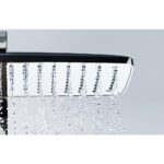 Высококачественная душевая стойка Raindance Select отличается современным дизайном в стиле hi-tech. Она изготовлена из нержавеющей стали, устойчивой к коррозии и агрессивному внешнему воздействию. Изделия из этого материала характеризуются прочностью, долговечностью, легкостью в уходе и привлекательным внешним видом. Размер душевого диска составляет 36х19 см. Его положение регулируется в соответствии с потребностями пользователя, поэтому устройство идеально подходит для повседневного применения. Душевая стойка оснащена регулируемым ограничителем температуры воды (не более 40 °C).При этом изделие экономично: расход воды при давлении 3 бара составляет 17 л/мин. Ухаживать за устройством легко: оно имеет внутреннее покрытие против известковых отложений. Модель комплектуется стеклянной полочкой, на которую можно положить личные вещи.