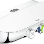 - Обратите внимание, что управление водой в стойке термостат, и это придется по вкусу любителям такого типа смесителей.