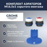 Комплект аэраторов Grohe 7,2 л/мин + 14,9 л/мин резьбой М16,5 (13937000) — это высококачественные комплектующие для смесителей от бренда Grohe.