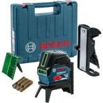 Лазерный нивелир Bosch GCL 2-15 G Professional поставляет с удобным универсальным креплением RM1 и обладает интуитивно понятным рабочим интерфейсом. Лучи зеленого цвета отличаются отличной видимостью на различных поверхностях, что особенно актуально в светлое время суток.Bosch GCL 2-15 G проецирует две вертикальные и одну горизонтальную линии с широкой разверткой лучей, а также точки отвеса и перпендикулярную точку сверху прибора. Измерительный прибор проводит измерения на длину до 15 м с максимальной погрешностью до ±0.3 мм/м.