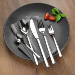 - содержит ложки, ножи, вилки, вилки для торта и чайные ложки
