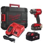 гайковёрт, быстрое зарядное устройство Milwaukee M12-18 FC, два аккумулятора Milwaukee M18 B5 5,0 Ач, инструкция по эксплуатации и кейс