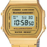 Мужские наручные часы Casio A-168WG-9 , где батарейка запускает механизм в действие. Корпус пластиковый с современным циферблатом и пластиковым стеклом, браслет стальной. Модель Casio A-168WG-9 обладает степенью влагостойкости 30 м (3 АТМ), где возможно мыть руки и пройти под легким дождем, для плавания рассмотрите модели с влагостойкостью от 100 м (10 АТМ). Циферблат подсвечивается электролюмисцентной подстветкой, позволяющей видеть время в темноте. Часы Casio A-168WG-9 оснащены такими дополнительными опциями, как: будильник, Snooze, двойное время, 12/24 формат времени.