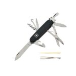 Карманный нож среднего размера для скалолазания. Добро пожаловать в мир офицерских ножей. Именно здесь зародилась легенда о швейцарском армейском ноже. И сегодня она продолжается с карманным ножом Climber. Его 14 функций настолько острые, прочные и интуитивно понятные, насколько это вам нужно. Поэтому неважно, поднимаетесь ли вы по карьерной лестнице или по скале, нож Climber будет с вами до самой вершины. Вы будете лучше подготовлены к своему следующему походу с этим легким и компактным инструментом. - Швейцарский карманный нож с 14 функциями - Включает ножницы и многофункциональный крючок Офицерский нож CLIMBER – многофункциональный инструмент с набором из 14 инструментов: Лезвие большое ; Лезвие малое ; Штопор ; Консервный нож с Отверткой 3 мм ; Открывалка для бутылок с Отверткой 6 мм и Инструментом для снятия изоляции ; Шило, кернер ; Ножницы ; Многофункциональный крючок (можно использовать для переноски посылок в том числе); Кольцо для ключей ; Пинцет ; Зубочистка.