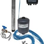 скважинный насос, блок управления, диафрагменный гидробак, датчик давления, манометр, запорный кран и зажимы для крепления кабеля