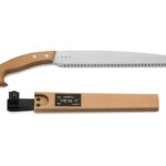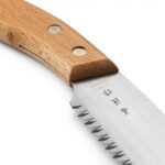Для веток максимум до 5 см Ø. Пильное полотно из термообработанной углеродистой стали, ручка из букового дерева. Сделано в Японии. Длина листьев 27 см, общая длина 43 см. Вес 130 г. Доставка в кобуре из букового дерева.