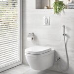 - Технология GROHE Triple Vortex обеспечивает мощный и равномерный смыв, который гарантирует чистоту и свежесть в вашей ванной комнате.