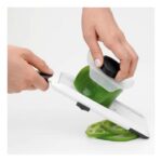 • Безопасный держатель продуктов превосходно защищает руки, и закрывает лезвие при хранении