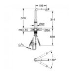 • Поворотный трубкообразный излив: угол поворота — 140°.