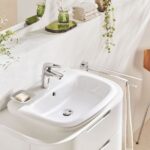Этот однорычажный смеситель легок и интуитивно понятен в использовании, что делает его идеальным решением для семейных ванных комнат со стандартными раковинами.