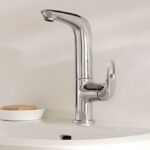 Однорычажный смеситель для раковины Grohe "Eurostyle New" с покрытием Moon White и с увеличенной высотой для максимального комфорта станет идеальным штрихом для современной ванной комнаты. Имеет интуитивно понятный дизайн рукоятки, а благодаря технологии SilkMove® и стандартам немецкого проектирования, его рычаг перемещается плавно и четко, обеспечивая идеальный контроль за расходом и температурой.