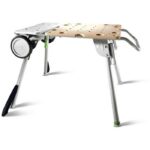 Подставка UG-CSC-SYS — отличное монтажное решение «три в одном». Для транспортировки от автомобиля до рабочего места он служит тележкой – с ее помощью систейнерную башню до 80 кг можно легко переместить на объект. Складывающиеся ножки можно разложить за один шаг, получив рабочий стол размером 58 х 58 см; практичная альтернатива стейку. Детали, подлежащие обработке, легко фиксируются на поверхности с помощью перфорированной пластины. Стенд демонстрирует весь спектр возможностей вместе с аккумуляторной настольной пилой CSC SYS 50. Она надежно размещается в отверстиях столешницы и может работать уже на эргономичной высоте 90 см. Чтобы использовать аккумуляторную настольную пилу CSC SYS 50 ближе к земле, ножки просто остаются сложенными, когда она стоит на земле. Платформа, используемая в качестве транспортной поверхности для систейнера, становится отличной опорой для поддержки длинных деталей при продольном,