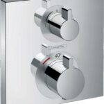Термостат Hansgrohe Ecostat Square 15714000 — устройство для ванны с душем, которое обеспечивает постоянное регулирование температуры и количества воды.
