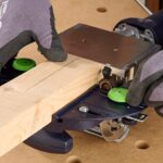 Бруски быстро выставляются и фиксируются по центру с помощью упора для планок Festool LA-DF 500/700, идеальный вариант для каркасных конструкций. Этот упор можно использовать как с Festool DF 500, так и с Festool DF 700. Замеры и разметка не нужны, так как точное выравнивание заготовки выполняется с помощью упора.