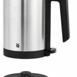 WMF KITCHENminis — ультракомпактный электрический чайник 0.8 л с мощностью 1960 Вт. Нержавеющая сталь Cromargan, быстрый нагрев, стильный дизайн. Экономия места до 50% по сравнению с обычными чайниками.