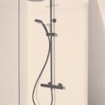 Душевая панель включает в себя верхний душ диаметром 200 мм и 1-функциональную душевую лейку Idealrain 100 мм. Ограничение потока воды составляет 12 литров в минуту для верхнего душа и 8 литров в минуту для лейки.