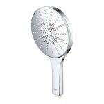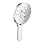 - GROHE SmartTip — эргономичный контроллер на задней стороне рукоятки, который позволяет управлять тремя струями: пульсирующей ActiveMassage, бодрящей Jet Spray и дождевой.