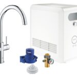 Представьте более умный способ наслаждаться водой в вашем офисе с помощью крана, который мгновенно подает вкусную питьевую воду — больше никакого расточительства бутилированной воды. Получите все необходимое для наслаждения фильтрованной, охлажденной и газированной водой прямо из крана с помощью стартового комплекта GROHE Blue Professional Duo — идеального для использования в офисах и на рабочих местах. Эта подключенная система водоснабжения поддерживается приложением GROHE Watersystems, которое позволяет вам наливать воду через смартфон, контролировать ее расход и автоматически заказывать фильтры и баллоны с CO2 напрямую. Вы даже можете использовать свой телефон для удаленной настройки системы. Комплект включает в себя однорычажный кран GROHE Blue и охладитель, способный подавать до 12 литров охлажденной воды в час. Вы можете выбрать негазированную, среднегазированную или газированную воду. Благодаря инновационному дизайну GROHE вы также можете наслаждаться функциями и возможностями высококачественного кухонного смесителя. Смеситель оснащен С-образным изливом и поворотным механизмом на 360°, а внутренние каналы подачи воды позволяют всегда разделять фильтрованную и нефильтрованную воду. Чтобы включить фильтрованную, охлажденную или газированную питьевую воду, просто нажмите кнопку со светодиодной подсветкой. Когда придет время заменить фильтрующий картридж, светодиодный дисплей предупредит вас. Этот моноблочный кухонный смеситель с четкими линиями и свежим, современным дизайном выполнен из прочного покрытия GROHE Long-Life. Внутренний картридж GROHE SilkMove обеспечивает плавное и точное управление в течение всего срока службы смесителя. Обратите внимание: фильтр GROHE Blue, баллон CO2 и картридж для очистки не входят в комплект поставки и заказываются отдельно. GROHE Blue Professional — лучшее решение для офисов.