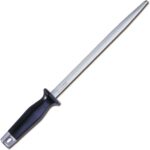 Этот круглый точильный брусок длиной 25 см от F. Dick — незаменимый инструмент для ухода за кухонными ножами. Благодаря гладкой поверхности и прочной конструкции, точильный брусок позволяет поддерживать остроту лезвия ножей между профессиональными заточками. Эргономичная рукоятка с кольцом для подвешивания обеспечивает комфортное использование и удобное хранение. Идеально подходит как для профессиональных поваров, так и для любителей кулинарии, стремящихся продлить срок службы и остроту своих ножей в повседневном использовании. Правильная техника приводит к лучшим результатам Для достижения наилучших результатов от использования точильного бруска крайне важна правильная техника. Поддерживайте угол 15-20 градусов между лезвием ножа и точильным бруском. Используйте легкие, длинные движения от пятки до кончика, и совершайте всего 4-6 движений с каждой стороны лезвия. Используя эту технику, вы восстанавливаете остроту лезвия ножа, не удаляя материал, что значительно увеличивает интервал между профессиональными заточками. Гладкая поверхность этого точильного бруска особенно подходит для регулярного ухода за уже острыми ножами. Практичный дизайн для повседневного использования Точильный брусок F. Dick весит всего 260 граммов, он удобен в обращении и при этом обеспечивает необходимую устойчивость. Эргономичная пластиковая рукоятка обеспечивает надежный хват во время работы, что крайне важно для точности. Встроенное кольцо для подвешивания позволяет легко хранить точильный брусок под рукой на кухне, чтобы он всегда был под рукой, когда вашим ножам нужно быстро заточить лезвие.