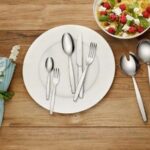 В набор входят 6 столовых ножей, 6 столовых вилок, 6 столовых ложек, 6 кофейных ложек и 6 вилок для торта. Приборы изготовлены из нержавеющей стали 18/10, кислотостойкой и хромоникелевой.